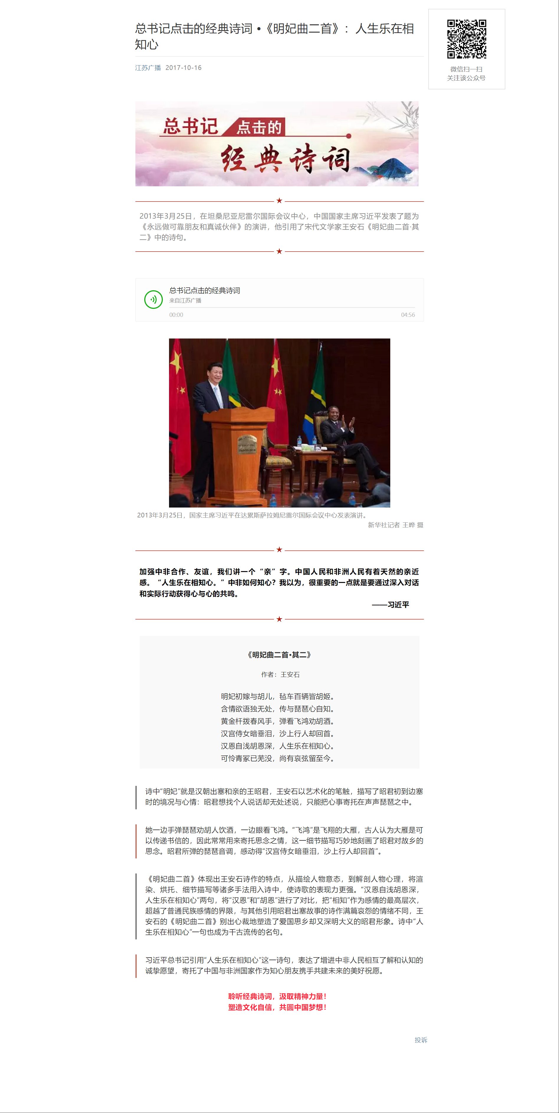 《總書記點擊的經典詩詞》23篇音頻二維碼合集